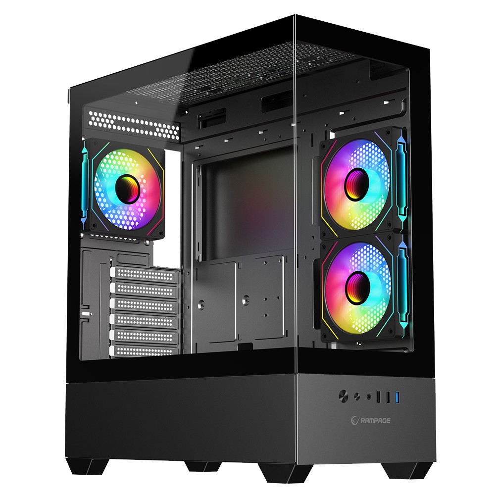 1ST Player UView UV6 Siyah 750W 80+ Silver ATX 3.1 ARGB 3x12cm Fan Panoramik Temperli Cam USB 3.0 M-ATX Kasa