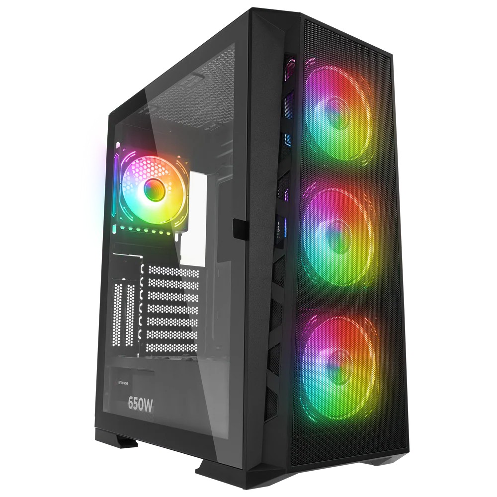 1ST Player AR7 Siyah 650W 80+ ARGB 4X12CM Fan Temperli Cam Mesh USB 3.0 Atx Kasa
